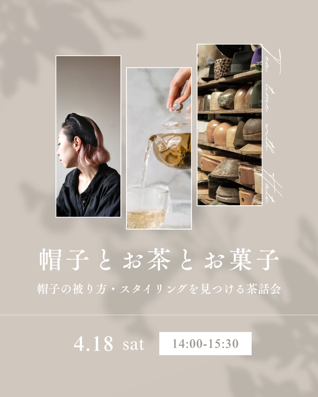 【茶話会】帽子とお茶とお菓子・4月18日(土)|帽子の被り方・スタイリングを見つける茶話会